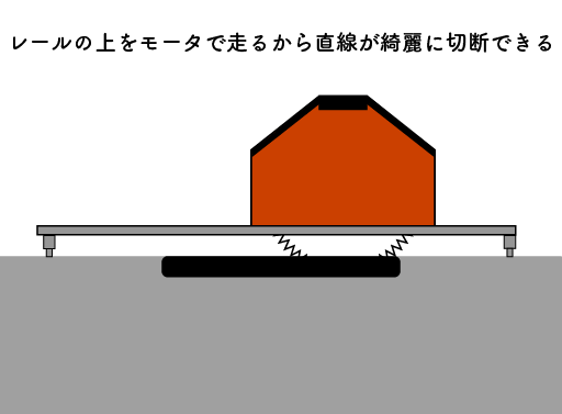 レールを敷いて切断する為、直線で切断したい場合最も制度が高い工法